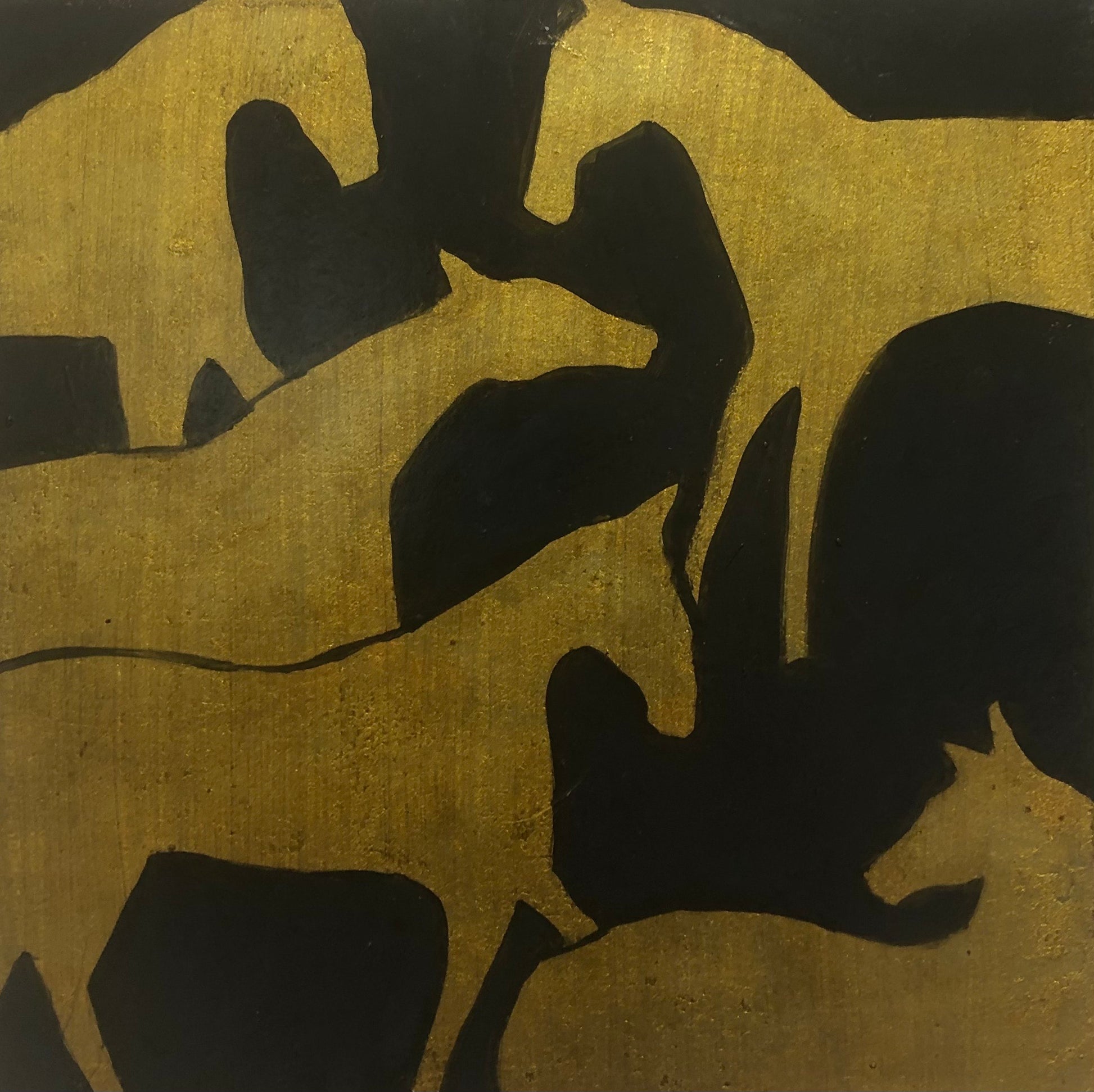 This Oil Painting by Brian Hibbard is 12 x 12. Brian experiments with nontraditional media like tar and resin and emphasizes sculptural elements and abstraction.