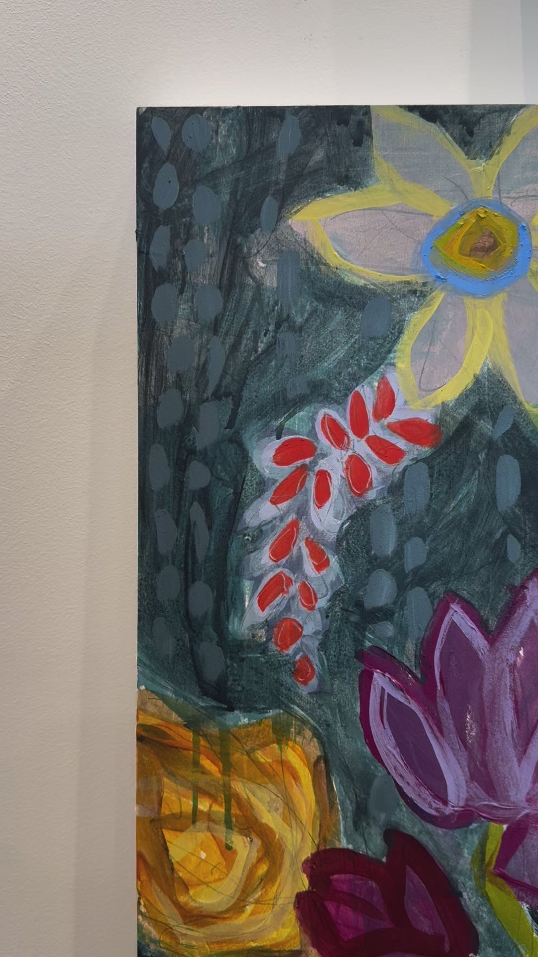 Berkley paints primarily with acrylic and ink. She paints the way she sees the world – full of joy, movement, and layers waiting to be discovered. She uses palette knives, brushes, tools, and fingers to scratch and manipulate the wood panels – because paintings are nothing if not alive.