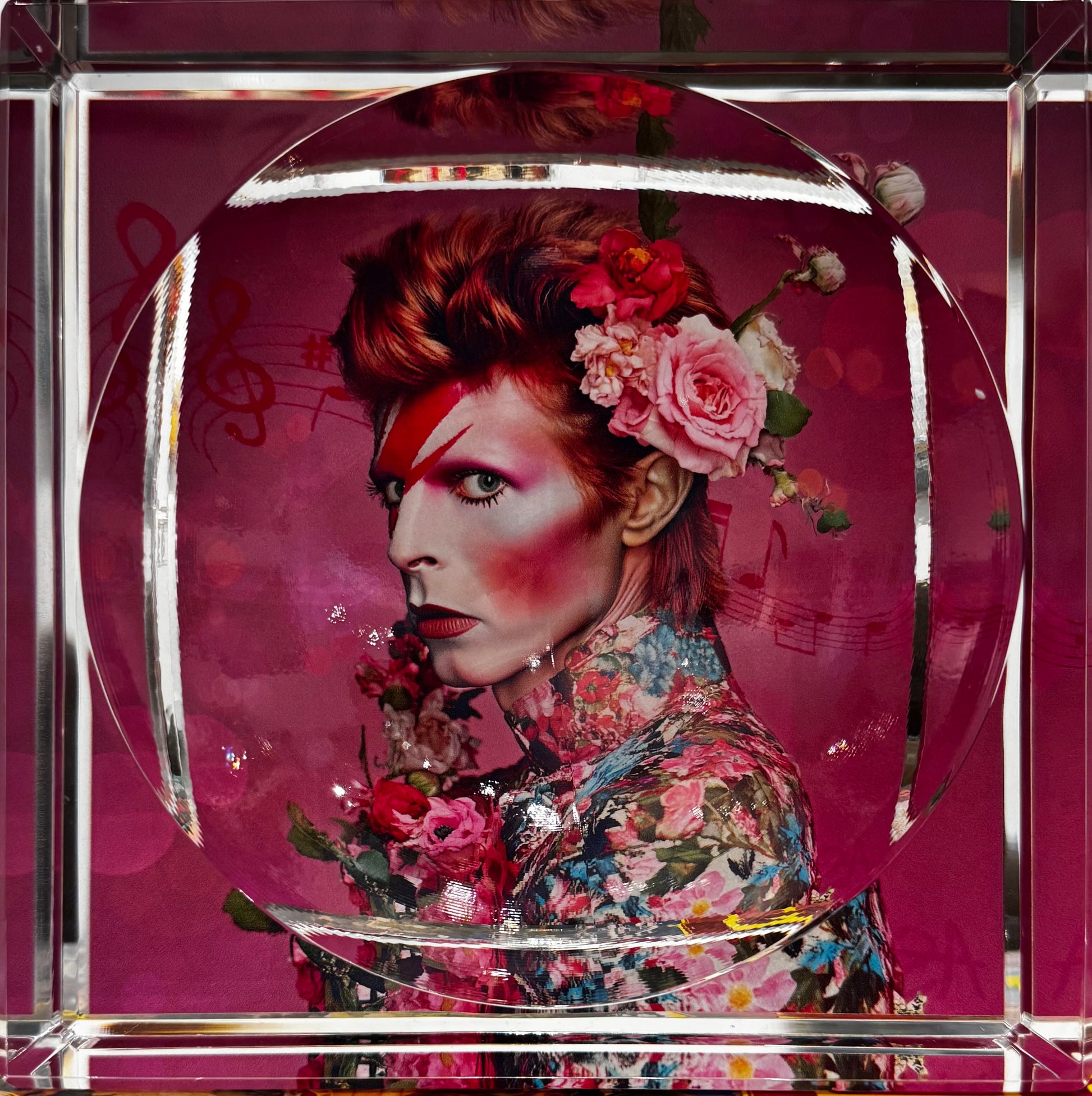 This candy dish by Amy Shekhter measures 6 x 6. Amy merges digital design with layers of texture including: resin, glitter, paint, and crystals.