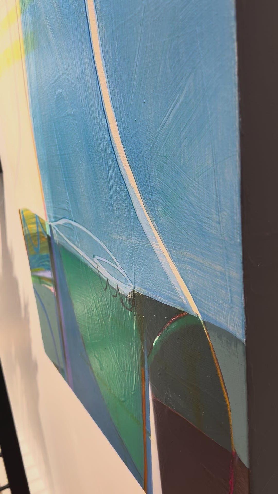 This abstract painting by Eva Magill-Oliver is 24 x 24, mixed media on canvas.