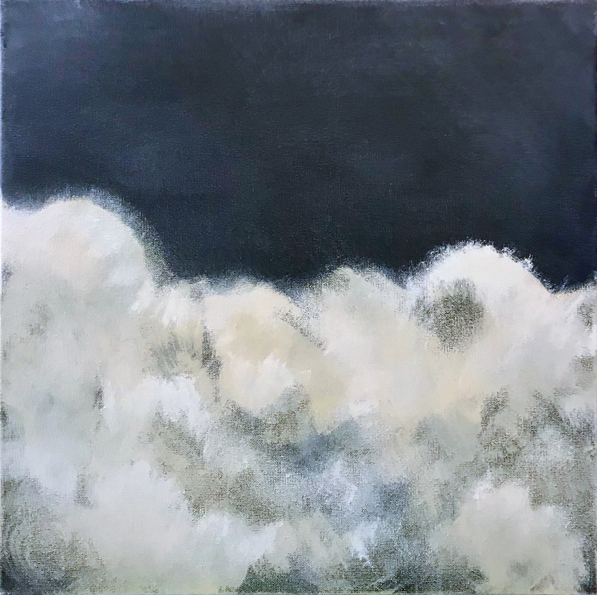 This work by Becca Splawn is 20 x 20. Becca's work is crafted using acrylic and mixed media on canvas. Her works are inspired by the expansive landscapes of rural South Carolina and Northern Michigan, where she spent most of her childhood.