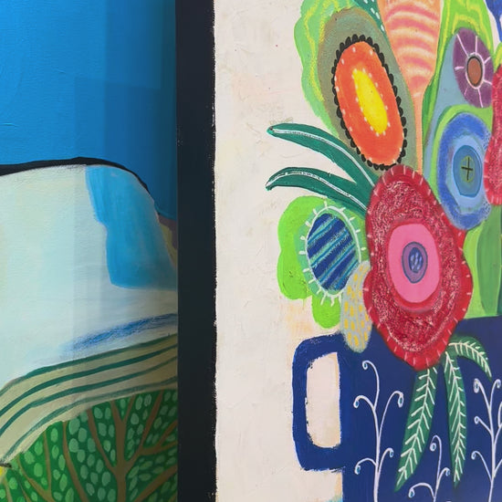 Nathaniel Mather is a painter and visual storyteller whose work explores the spaces between the real and the imagined, the material and the spiritual. Using vibrant color, layered forms, and symbolic imagery, he creates paintings that draw viewers into unfolding narratives where meaning reveals itself over time.