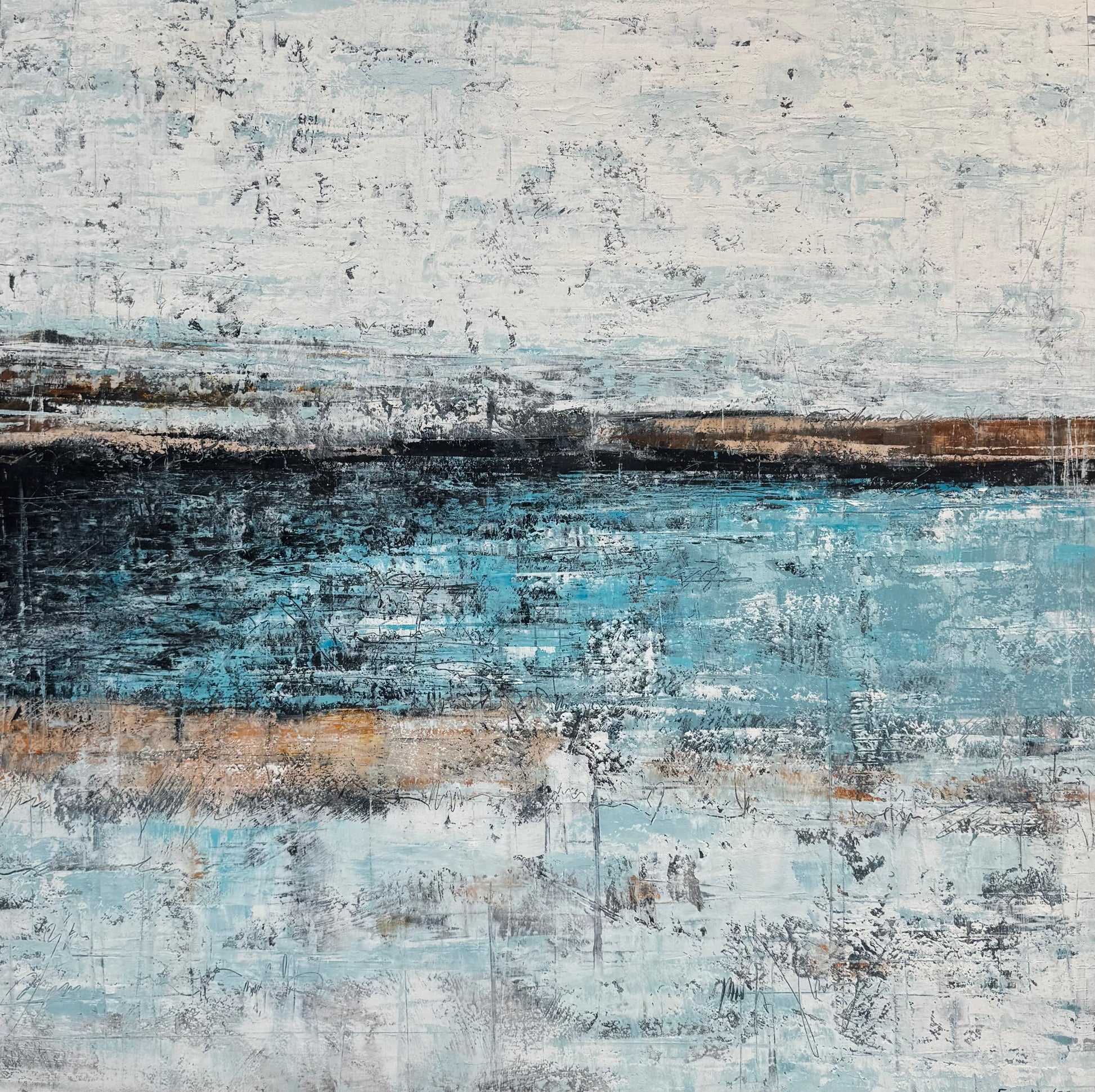 This Oil and Cold Wax painting by Sarkis Chardodjian is 24 x 24 on cradled panel.