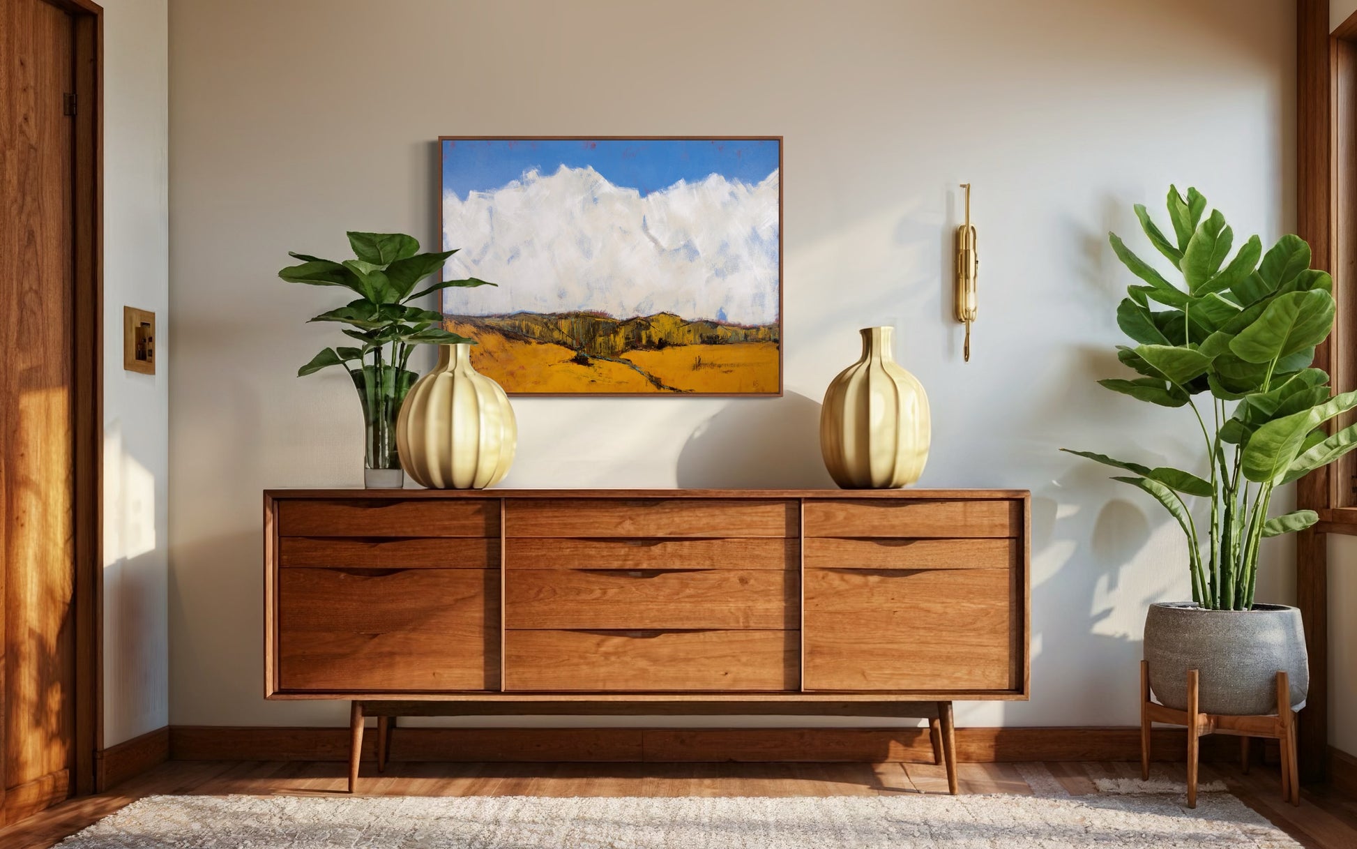 Becca’s works are crafted using acrylic and mixed media on canvas and are inspired by the expansive landscapes of rural South Carolina and northern Michigan, where she spent much of her childhood. Her paintings draw on vast open skies and fields that suggest the contemplative transience of nature. Her compositions blend abstract elements with realism to capture the ephemeral essence of the natural world while maintaining a sense of its enormity and depth.