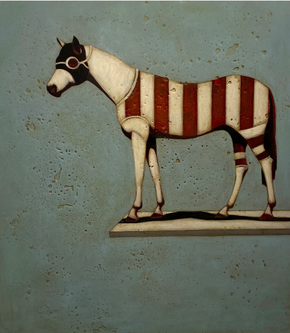 sculptural elements and abstraction. Birds, Horses and figurative works make up his