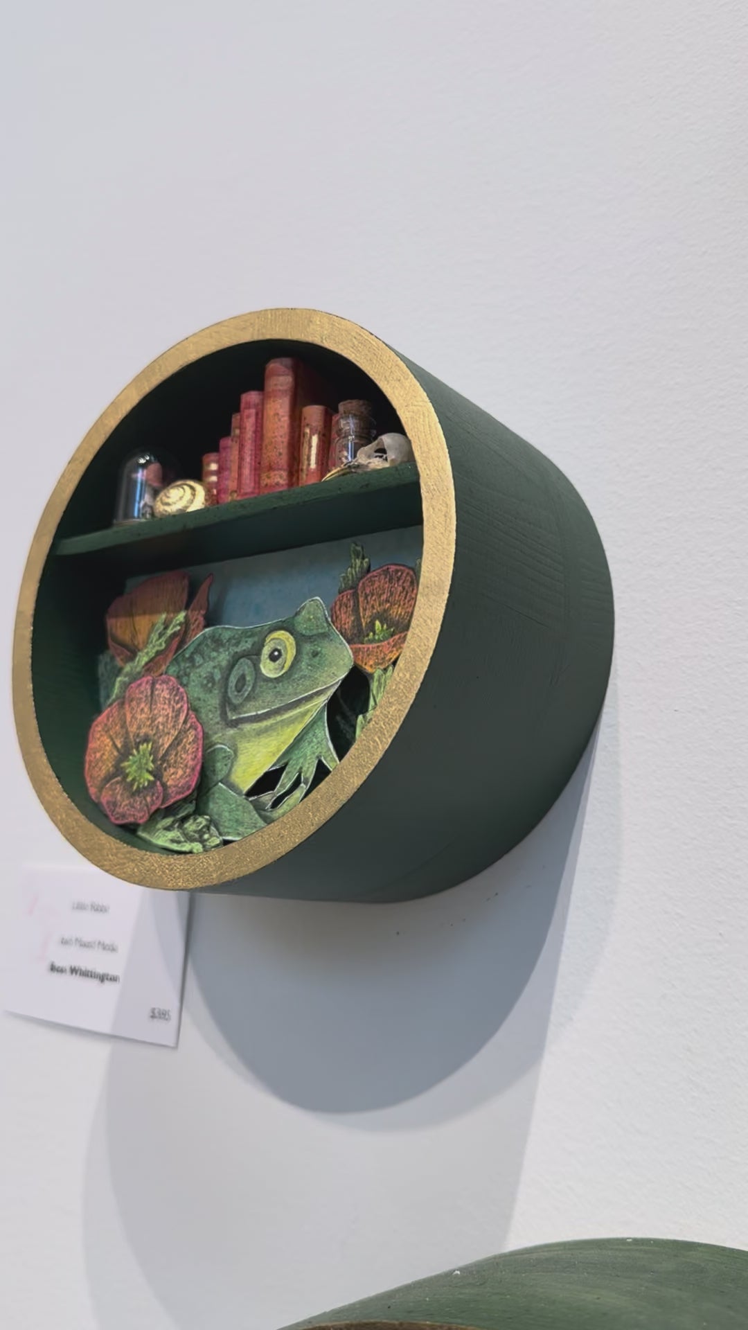 This mixed media piece by Bess Whittington measures 6 x 6 x 3