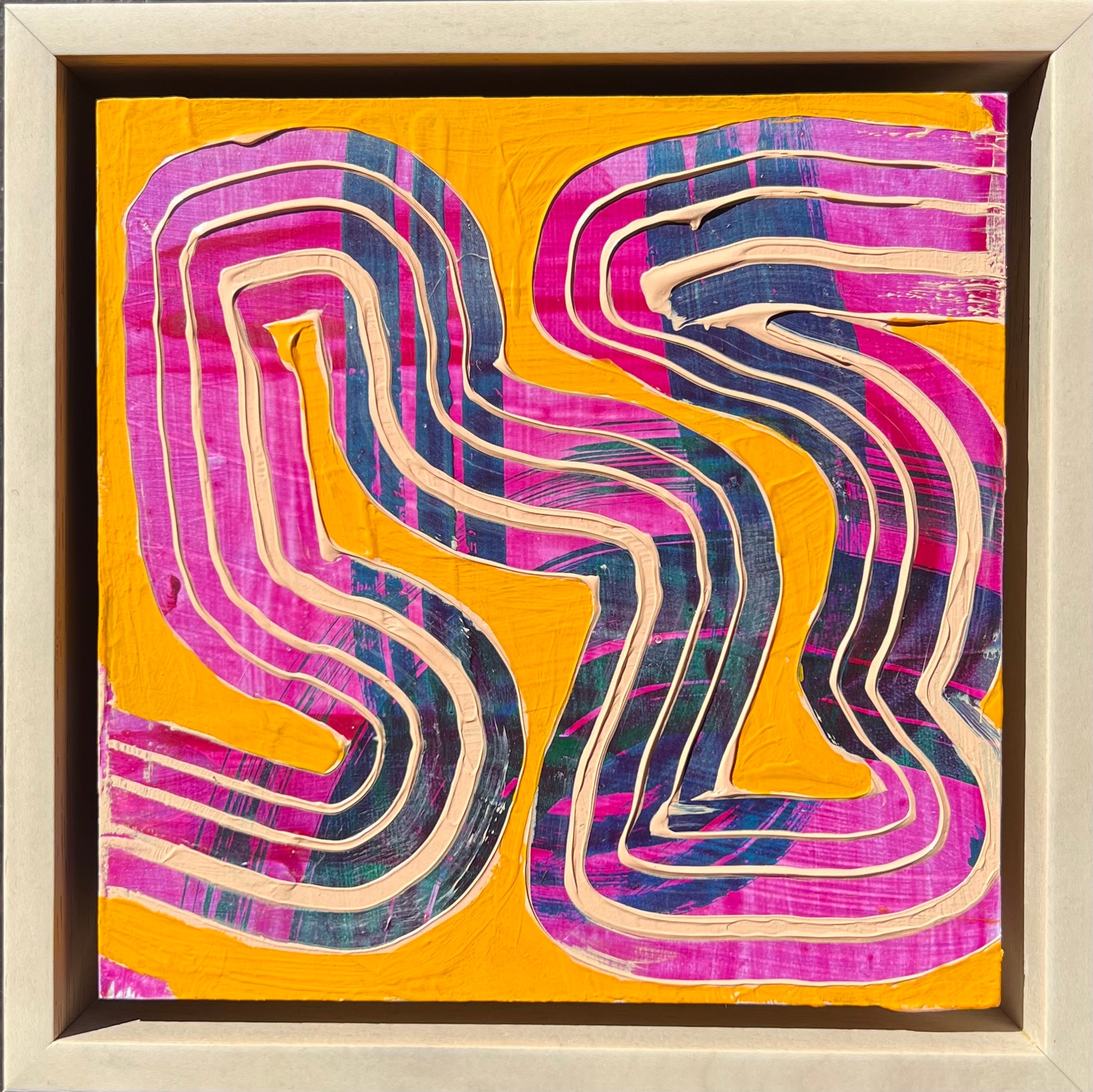 This painting by Sunny Mullarkey measures 6.5. x 6.5 x 1.5 . This work is acrylic on wood and is framed.