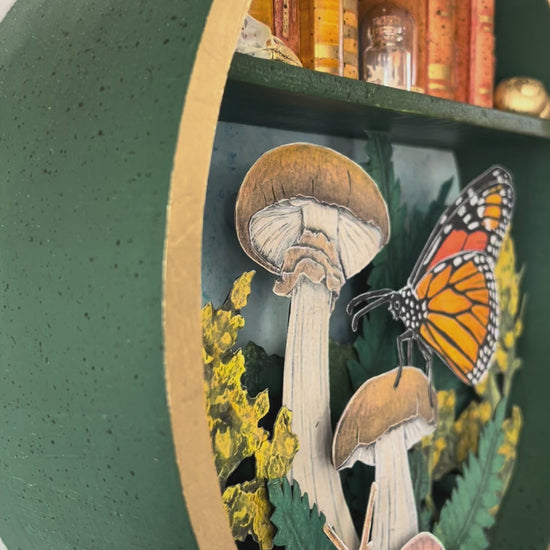 "Monarch and Mushrooms" 10.5 x 10.5 x 3.25
