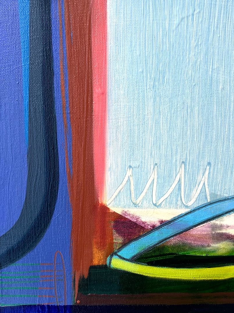 This abstract painting by Eva Magill-Oliver is 9 x 12, mixed media on canvas.