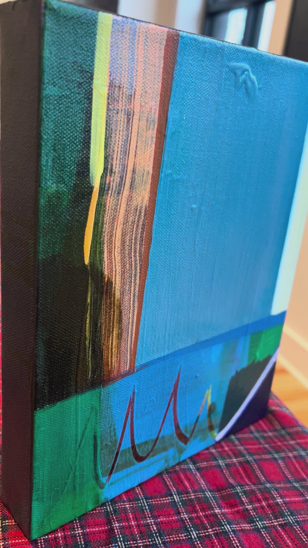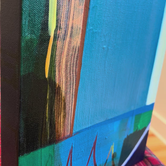 This abstract painting by Eva Magill-Oliver is 8 x 10, mixed media on canvas.