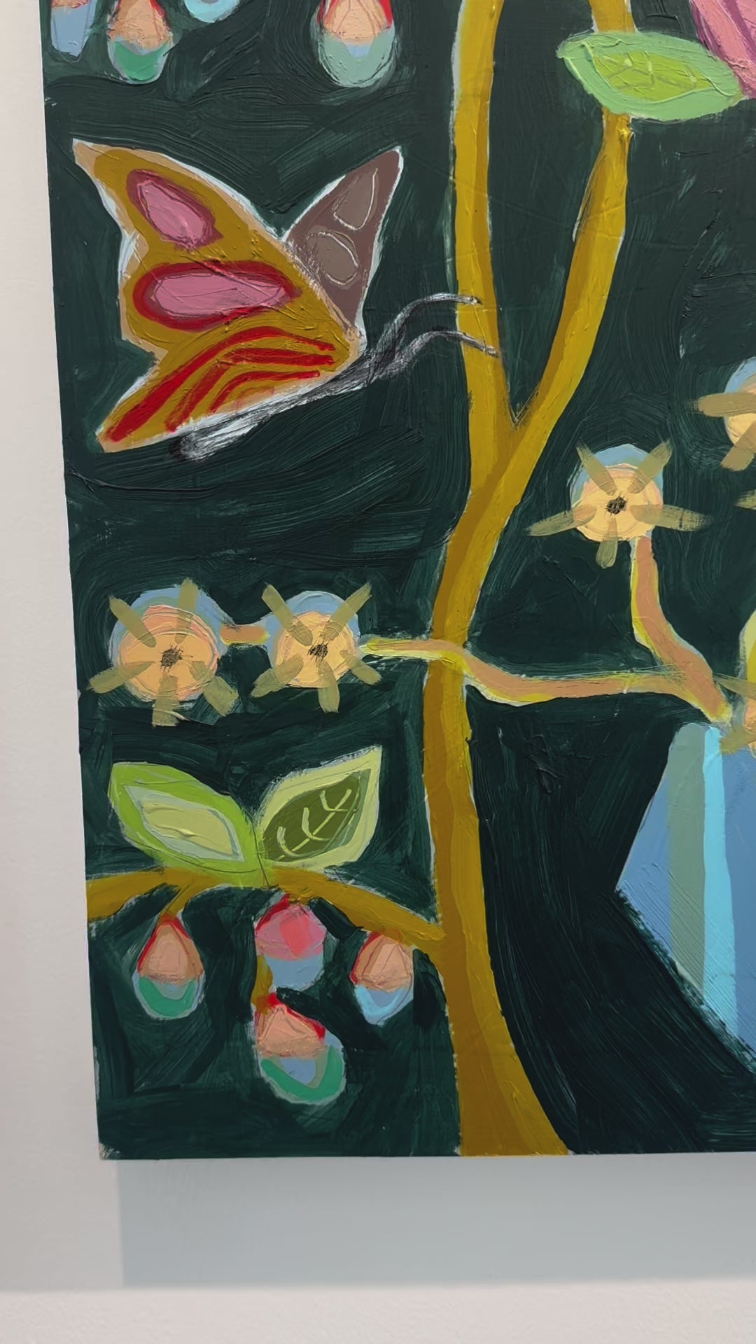 Berkley paints primarily with acrylic and ink. She paints the way she sees the world – full of joy, movement, and layers waiting to be discovered. She uses palette knives, brushes, tools, and fingers to scratch and manipulate the wood panels – because paintings are nothing if not alive.