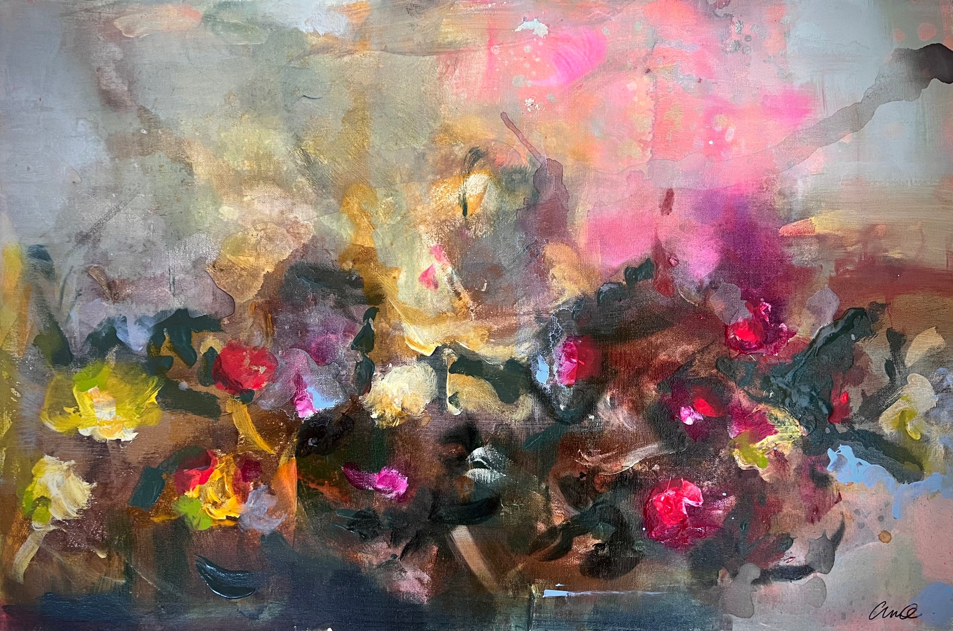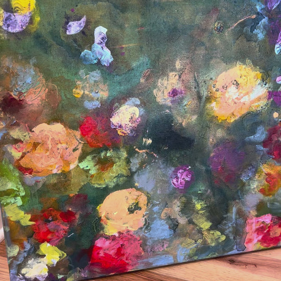 Born in Montreal- Quebec to a French Canadian mother and a Latin American father, Amelia G. De Hart moved around the USA in her twenties traveling extensively from Florida to California and then through the Blue Ridge mountains where she eventually found an artist community nestled in the countryside. She then parted her time between Canada and Virginia and completed a Bachelors of Fine Arts at Concordia University. Later on she attended various art residencies through America, and the Arts Students League in New York city, where she sought to let her explorations of the natural world and her fascination for flora inform her work. Following in the footsteps of many Americana painters and French impressionists alike (O'Keeffee, Pelton, Odilon Redon, Monet) seeking to express the divine through plant form, she went on to create complex yet soothing abstracts using vivid pigments and fluid like shapes. Speaking of her process De Hart says: " My technique is based on a more sensory and physical method than a rigid conceptual one. I always strive to explore different textures, effects and shapes, allowing the paint to find a dynamic of its own by letting “mishaps” happen. I like to think that water and sun are mediums just as important as paint and brushes in my work, as I often let my paintings sit in the sun for hours to let water and paint stains evaporate and for the many layers to dry. Spontaneity, memory, flow. I also believe color can be therapeutic and healing and color itself can invite a wide range of emotions. I want my work to be regarded as joyous and enlightening."