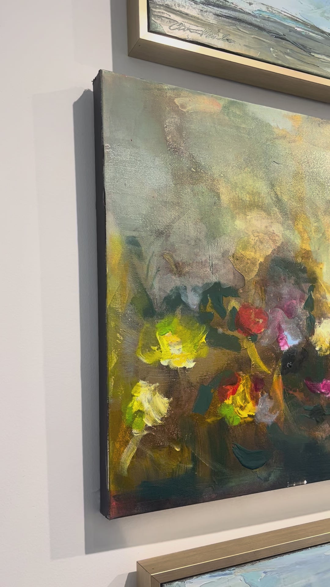 This Oil Painting by Amelia G. DeHart measures 24"x 36". Ameila seeks to express the divine through plant form, she creates complex yet soothing abstracts using vivid pigments and fluid like shapes.