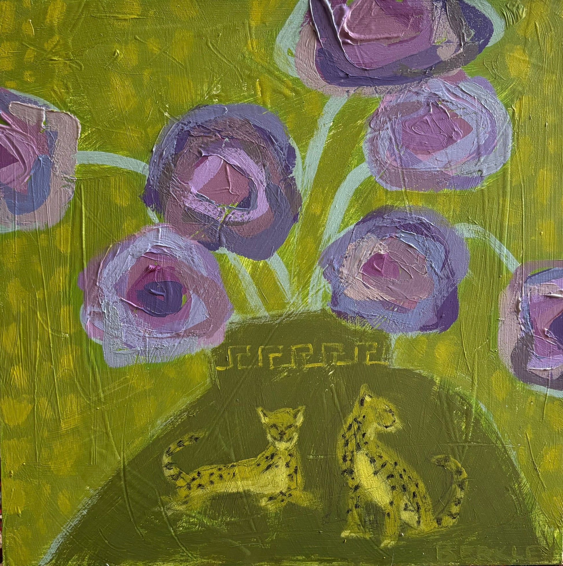 Berkley paints primarily with acrylic and ink. She paints the way she sees the world – full of joy, movement, and layers waiting to be discovered. She uses palette knives, brushes, tools, and fingers to scratch and manipulate the wood panels – because paintings are nothing if not alive.