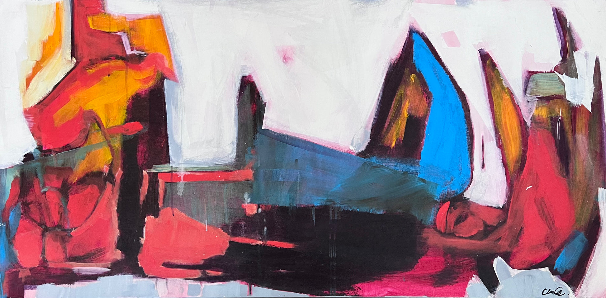 This Oil Painting by Amelia G. DeHart measures 24"x 48". Ameila seeks to express the divine through plant form, she creates complex yet soothing abstracts using vivid pigments and fluid like shapes.