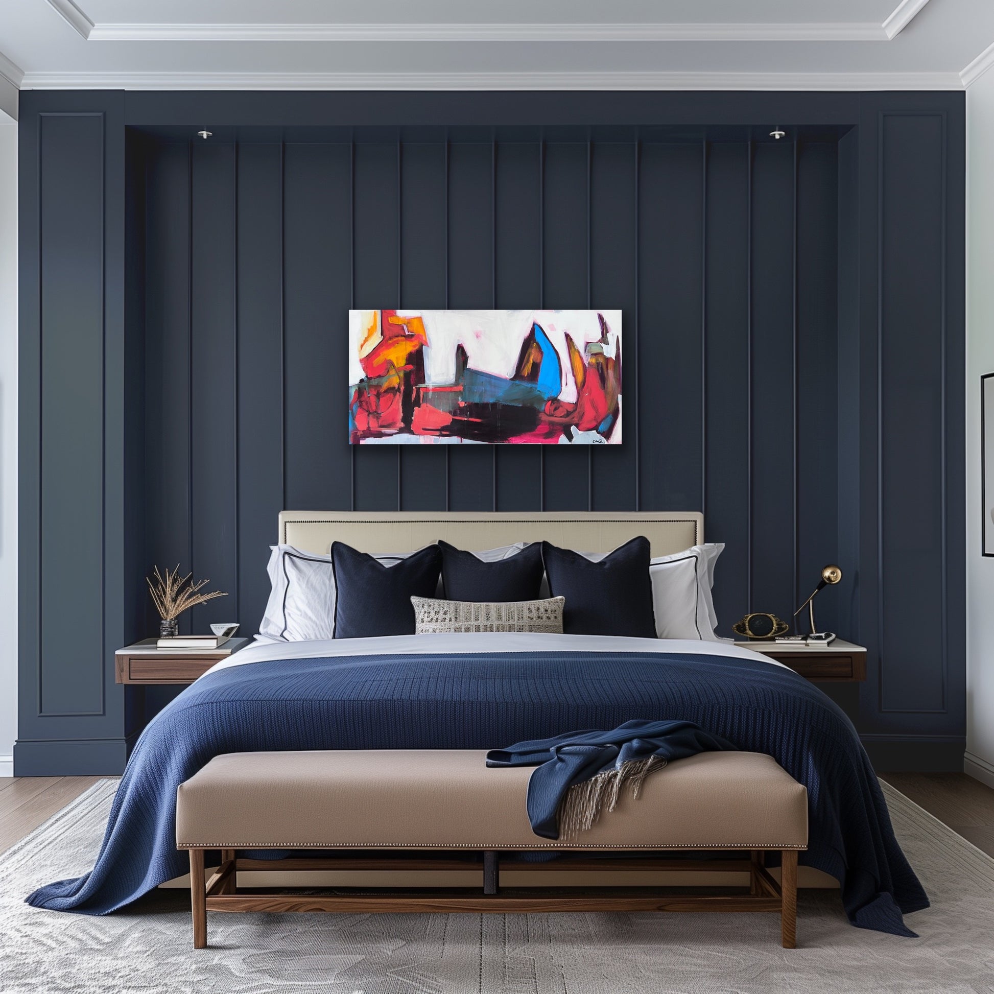 Born in Montreal- Quebec to a French Canadian mother and a Latin American father, Amelia G. De Hart moved around the USA in her twenties traveling extensively from Florida to California and then through the Blue Ridge mountains where she eventually found an artist community nestled in the countryside. She then parted her time between Canada and Virginia and completed a Bachelors of Fine Arts at Concordia University. Later on she attended various art residencies through America, and the Arts Students League in New York city, where she sought to let her explorations of the natural world and her fascination for flora inform her work. Following in the footsteps of many Americana painters and French impressionists alike (O'Keeffee, Pelton, Odilon Redon, Monet) seeking to express the divine through plant form, she went on to create complex yet soothing abstracts using vivid pigments and fluid like shapes. Speaking of her process De Hart says: " My technique is based on a more sensory and physical method than a rigid conceptual one. I always strive to explore different textures, effects and shapes, allowing the paint to find a dynamic of its own by letting “mishaps” happen. I like to think that water and sun are mediums just as important as paint and brushes in my work, as I often let my paintings sit in the sun for hours to let water and paint stains evaporate and for the many layers to dry. Spontaneity, memory, flow. I also believe color can be therapeutic and healing and color itself can invite a wide range of emotions. I want my work to be regarded as joyous and enlightening."