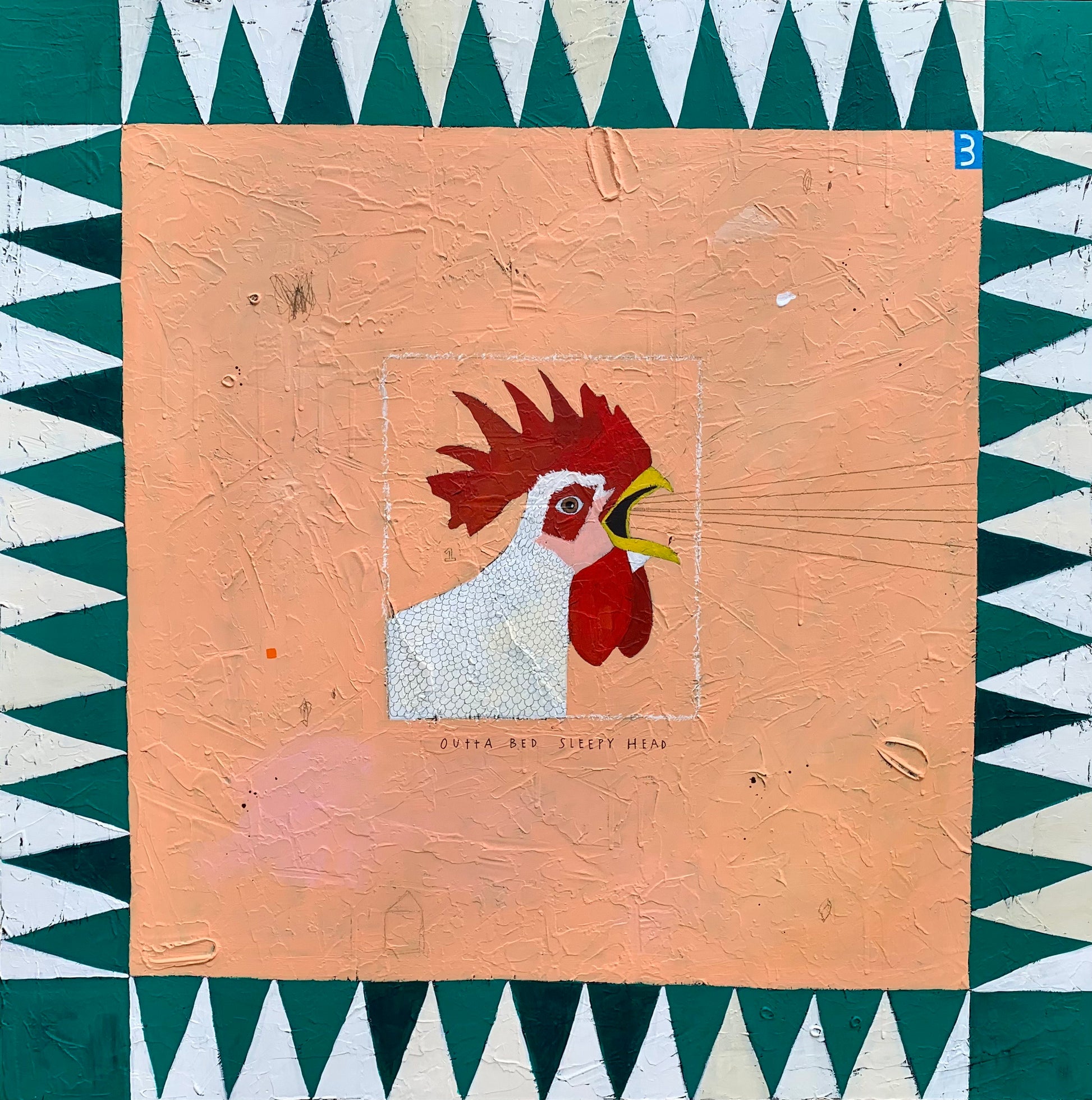 This painting by Bennett measures 36 x36. Bennett's mixed media paintings are a celebration of all-things mid-century advertising, pop-art, and her southern upbringing.