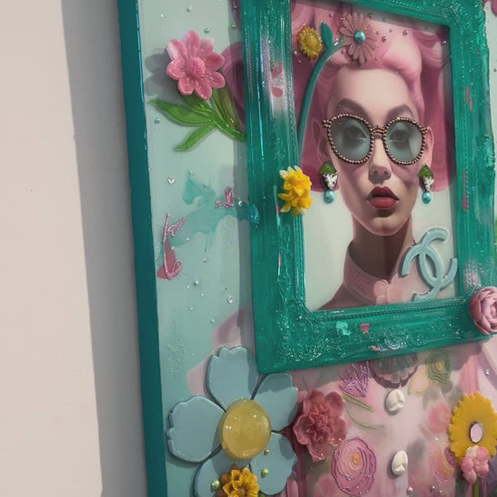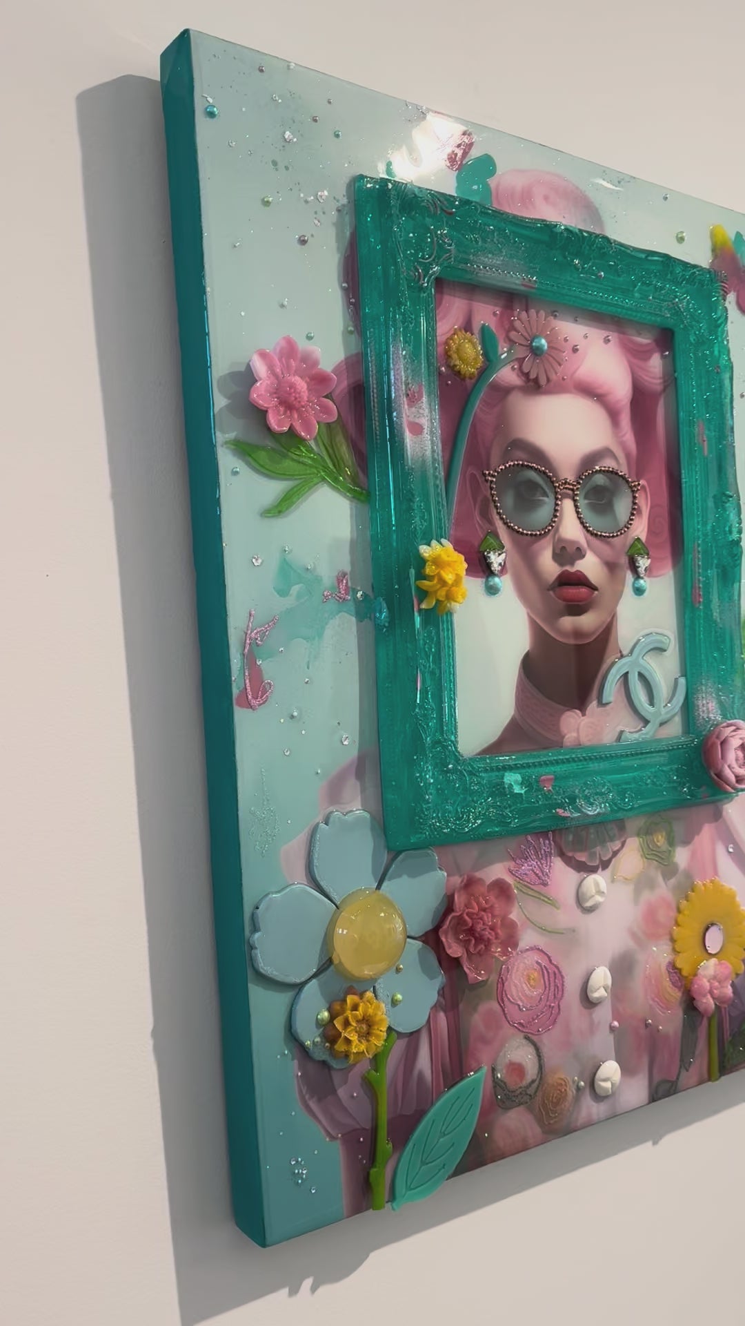 Amy Shekhter is a multi-disciplinary artist living in Florida. She spent the first 20 years of her life growing up in Alaska, which has many months of cold and darkness. This inspired her to use unconventional materials to create a space indoors filled with colorful art and interesting designs. After moving to Florida, she earned her Masters Degree in Art Education, and spent 8 years teaching public and private school students about art. Having missed the time to create her own work, she decided quit teaching to follow her passion and became a full-time artist. Guided by her fascination with different cultures, communities, and fashion, Shekhter merges digital design with various materials and textures. Layers of media, such as resin castings, plexiglass, beads and glass are carefully placed to give each artwork a three-dimensional appearance. Each figure is imagined from a distant memory or dream and inspired by the beauty of nature and growth, giving the viewer a sense of joy and wonder while also having them construct their own connection from the various visual elements.