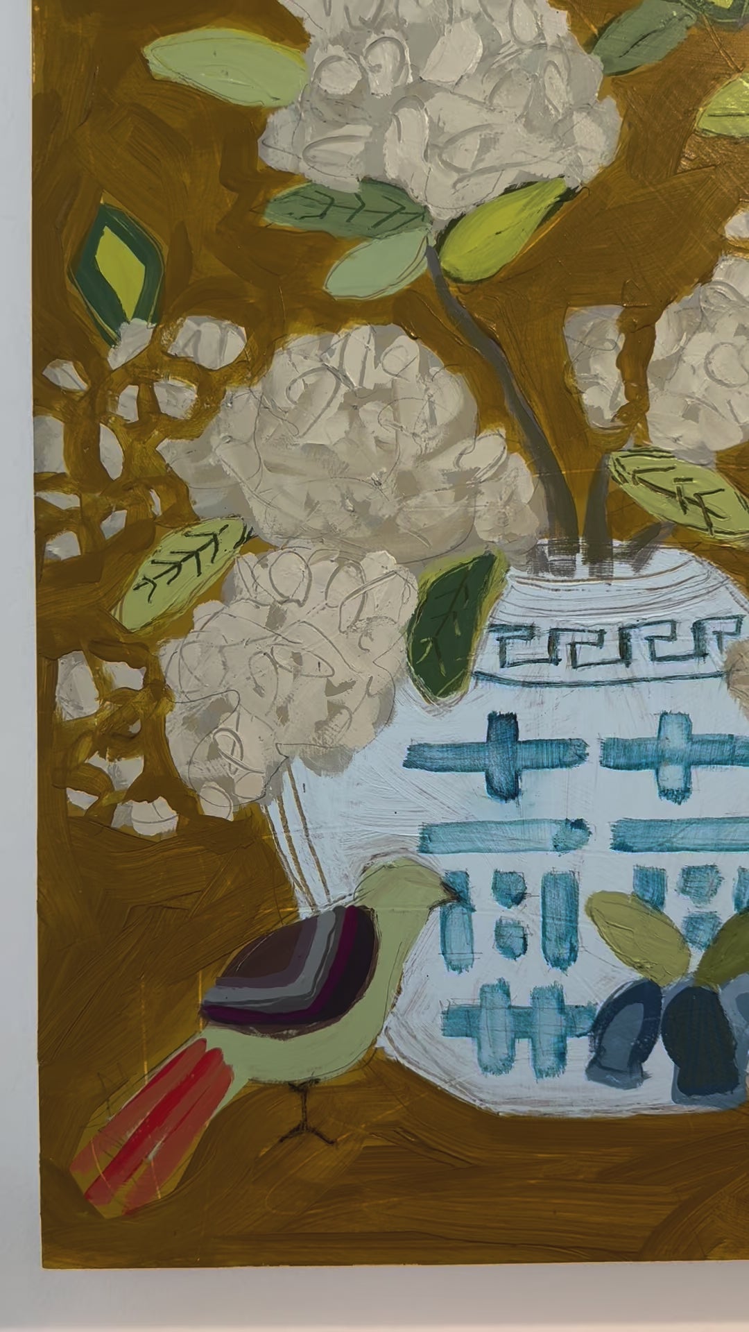 Berkley paints primarily with acrylic and ink. She paints the way she sees the world – full of joy, movement, and layers waiting to be discovered. She uses palette knives, brushes, tools, and fingers to scratch and manipulate the wood panels – because paintings are nothing if not alive.