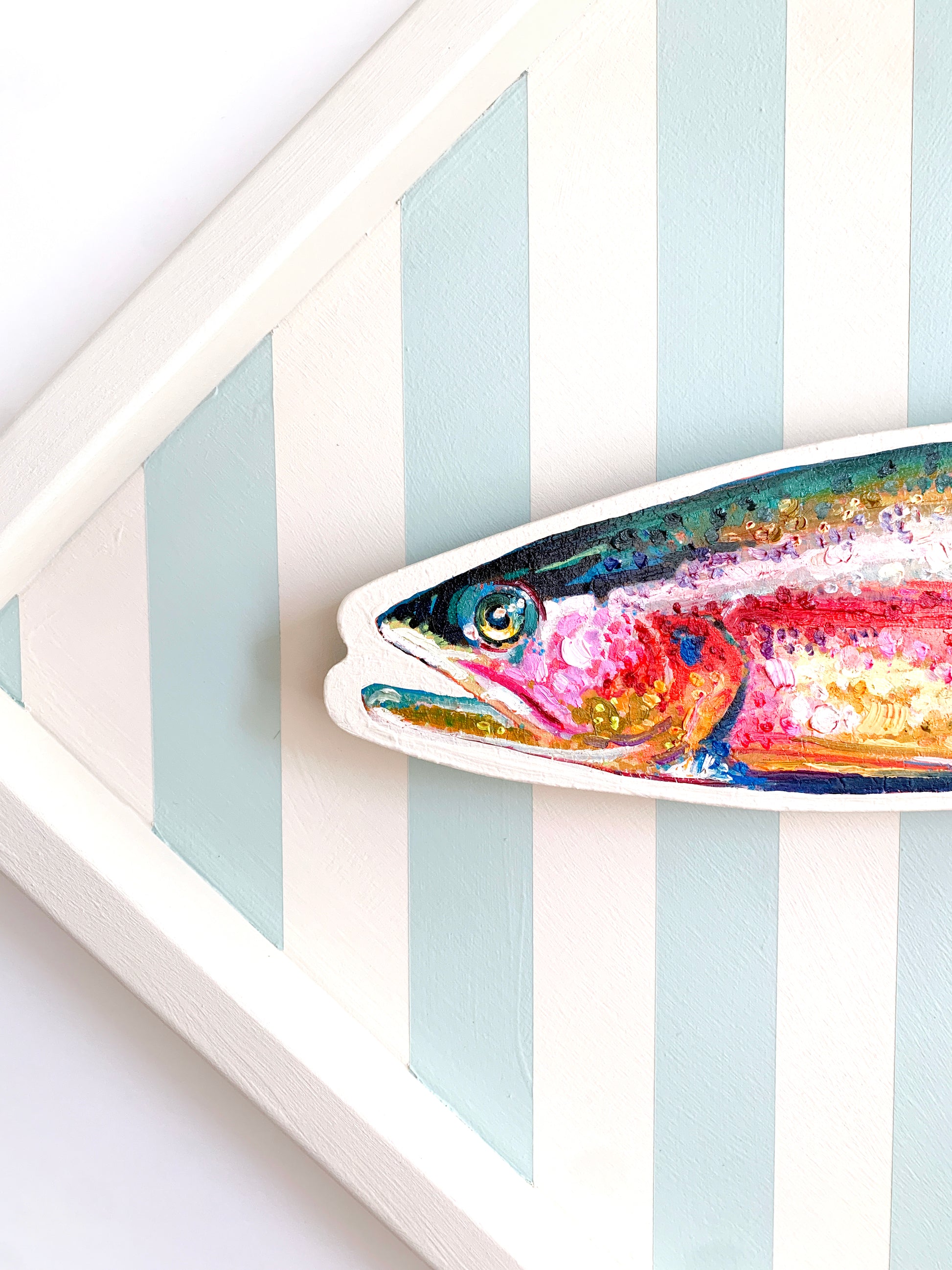 "Rainbow Trout in Light Sky" 28 x 28 Diamond