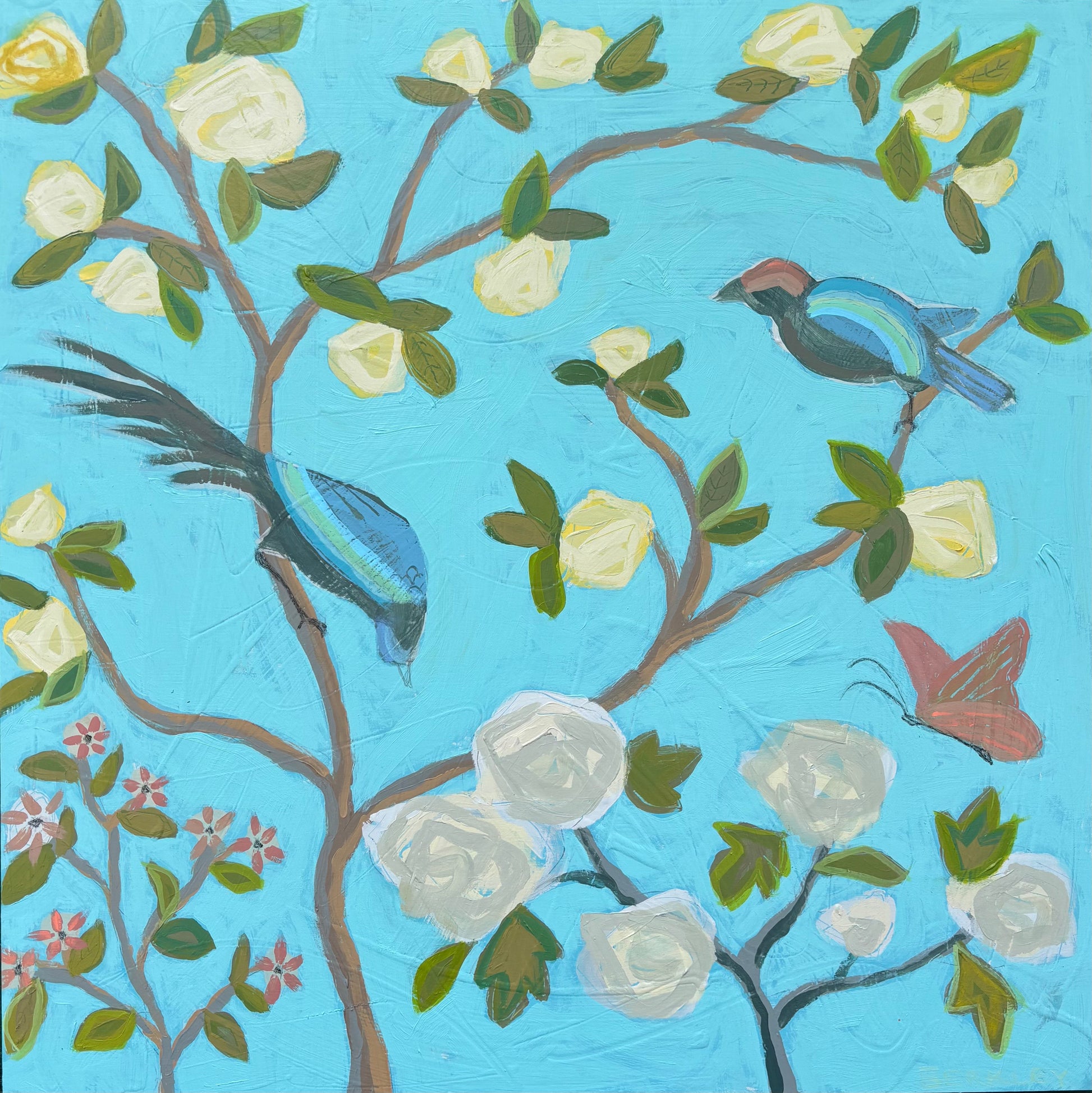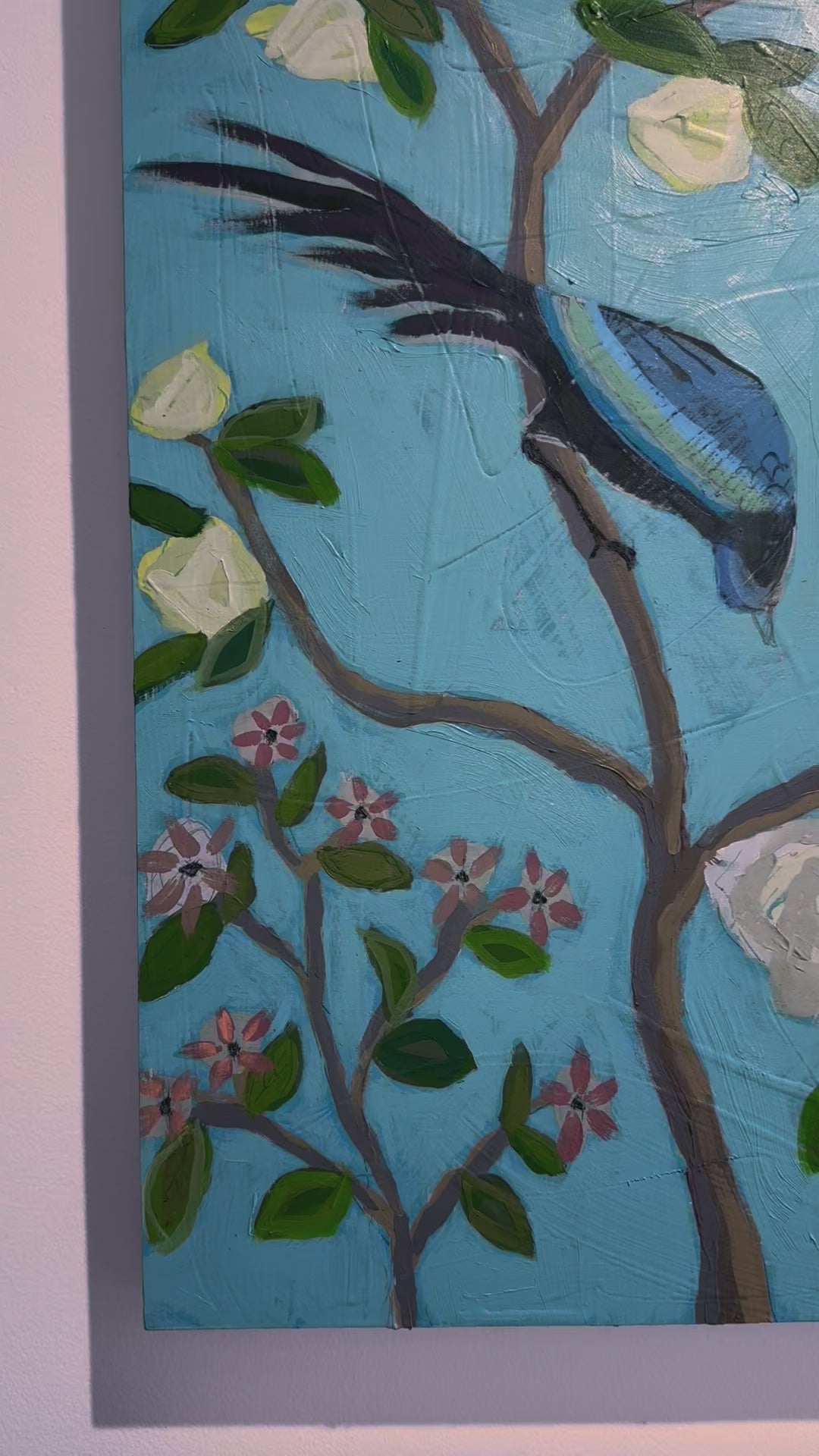 Berkley paints primarily with acrylic and ink. She paints the way she sees the world – full of joy, movement, and layers waiting to be discovered. She uses palette knives, brushes, tools, and fingers to scratch and manipulate the wood panels – because paintings are nothing if not alive.