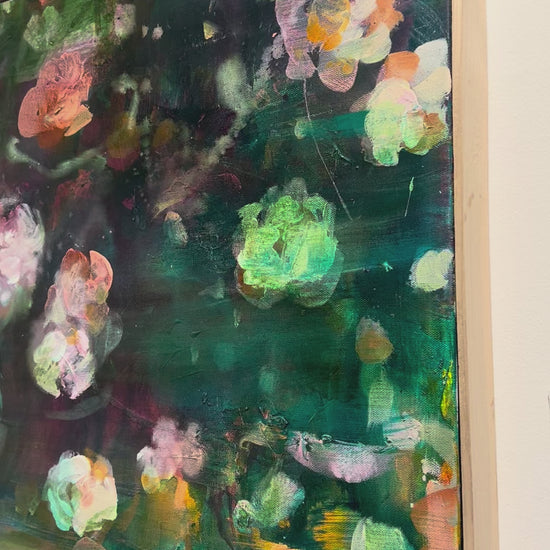 Born in Montreal- Quebec to a French Canadian mother and a Latin American father, Amelia G. De Hart moved around the USA in her twenties traveling extensively from Florida to California and then through the Blue Ridge mountains where she eventually found an artist community nestled in the countryside. She then parted her time between Canada and Virginia and completed a Bachelors of Fine Arts at Concordia University. Later on she attended various art residencies through America, and the Arts Students League in New York city, where she sought to let her explorations of the natural world and her fascination for flora inform her work. Following in the footsteps of many Americana painters and French impressionists alike (O'Keeffee, Pelton, Odilon Redon, Monet) seeking to express the divine through plant form, she went on to create complex yet soothing abstracts using vivid pigments and fluid like shapes. Speaking of her process De Hart says: " My technique is based on a more sensory and physical method than a rigid conceptual one. I always strive to explore different textures, effects and shapes, allowing the paint to find a dynamic of its own by letting “mishaps” happen. I like to think that water and sun are mediums just as important as paint and brushes in my work, as I often let my paintings sit in the sun for hours to let water and paint stains evaporate and for the many layers to dry. Spontaneity, memory, flow. I also believe color can be therapeutic and healing and color itself can invite a wide range of emotions. I want my work to be regarded as joyous and enlightening."