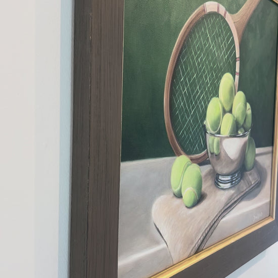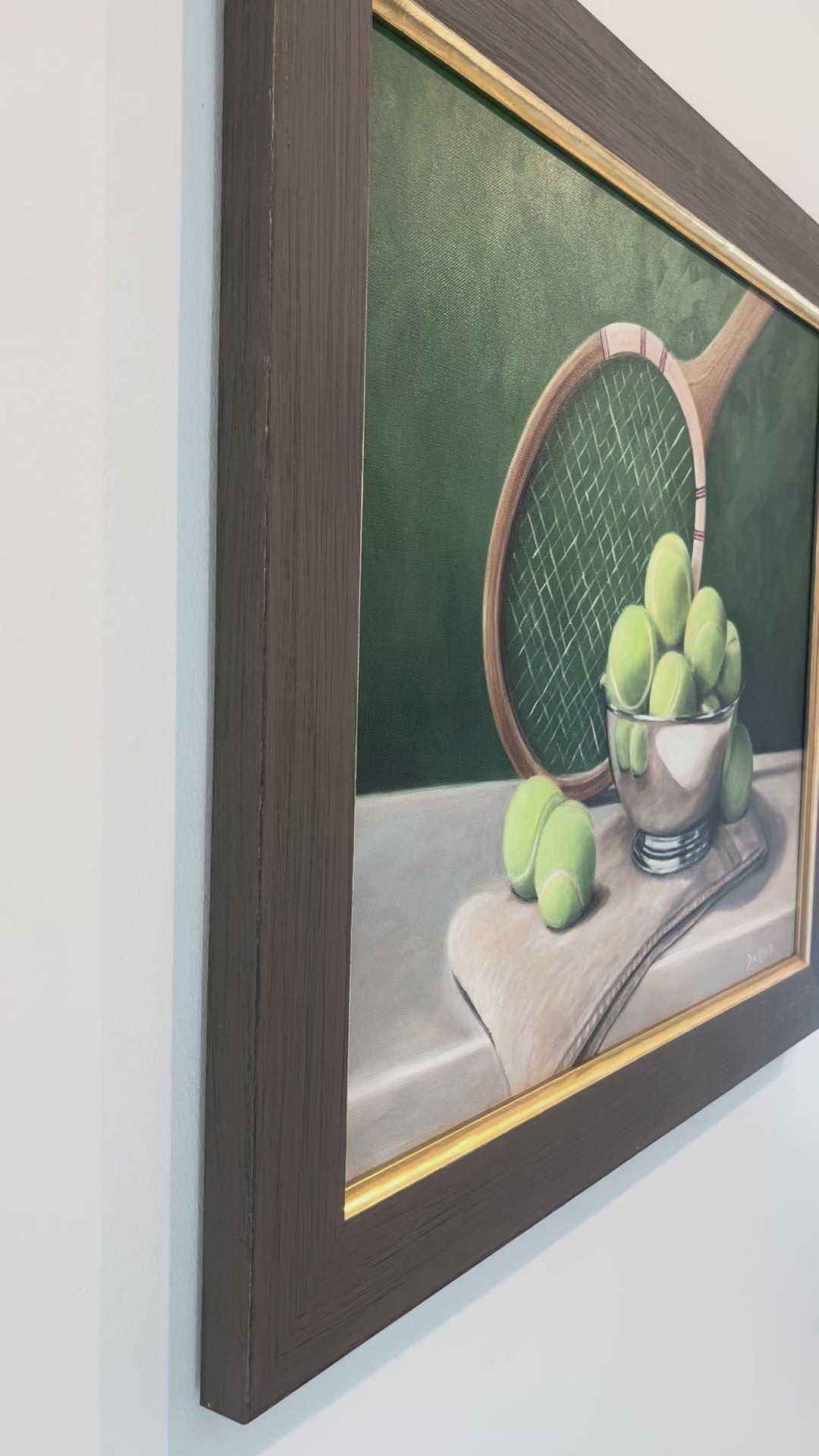 This oil on linen painting by Drue McGarty measures 20"x 24". This painting is set in a wood and gold frame.