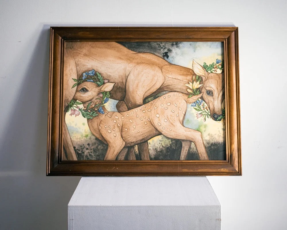 This painting by Alexander Rouse measures 24"x 18" and is set in a vintage frame. This piece is made with watercolor and gouache on paper.