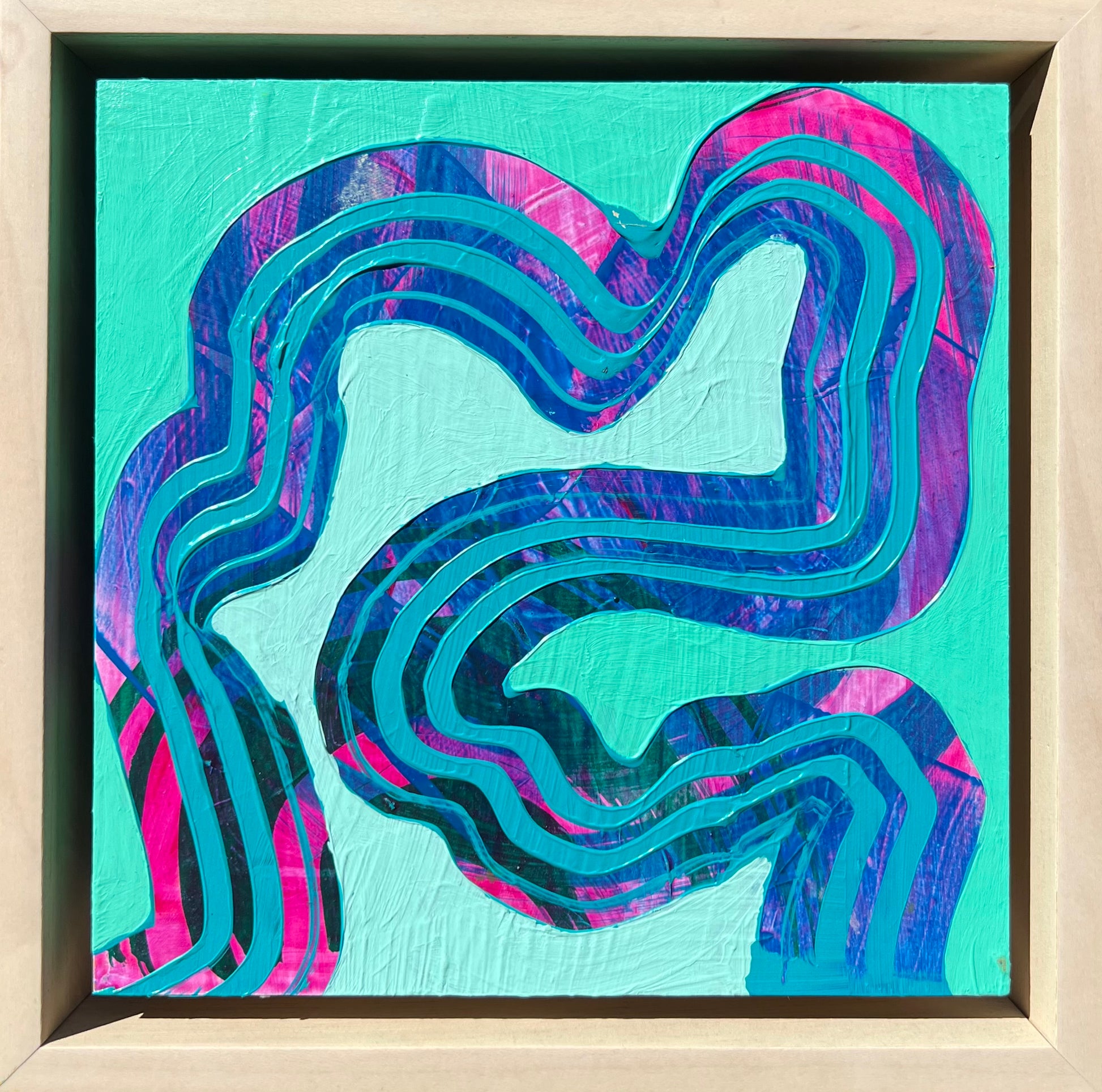 This painting by Sunny Mullarkey measures 6.5. x 6.5 x 1.5 . This work is acrylic on wood and is framed.