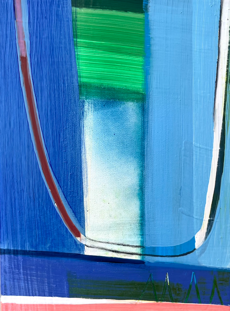 This abstract painting by Eva Magill-Oliver is 9 x 12, mixed media on canvas.