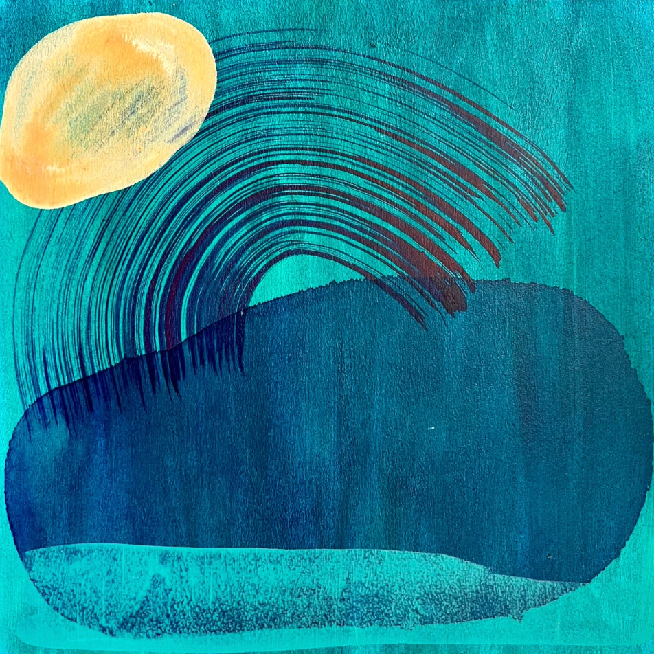 This Painting by Sunny Mullarkey is 12 x 12. This painting is acrylic on wood.
