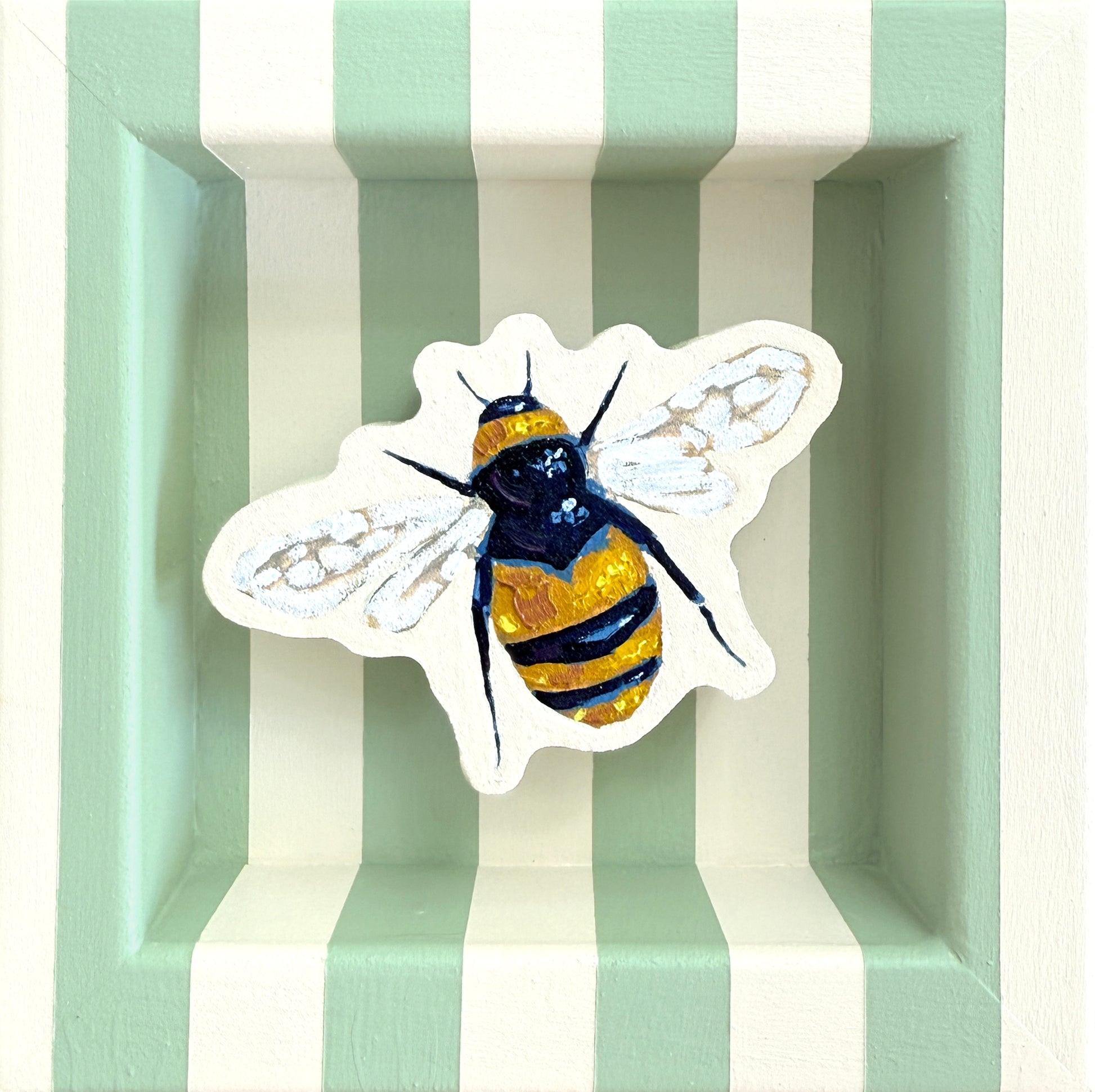 This mixed media work by Emily Furr is 6 x 6. Emily uses oil and acrylic on polystyrene and wooden panel.