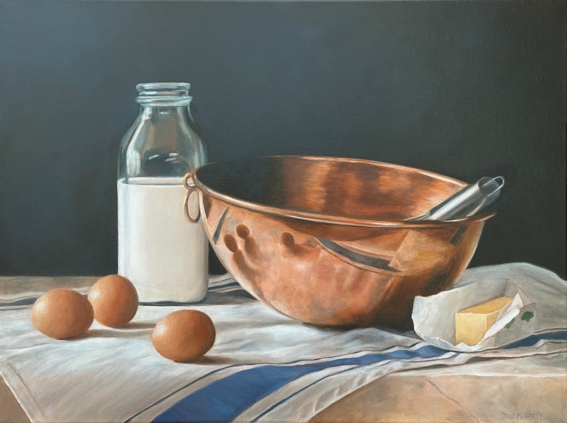 This collection of still life paintings by Drue McGarty celebrates the quiet beauty in everyday moments. She merges Dutch Golden Age influences with a contemporary Southern sensibility to create warm, grounded paintings that are luminous and rich in detail. Her compositions, which often include flowers from her garden, local birds, vintage objects, and locally inspired vignettes, feel both timeless and personal. She often paints poppies which have been a recurring presence throughout her life, from her childhood in California to her Charleston garden. The fragile, fleeting nature of poppies has always reminded Drue to appreciate the present, and recognize the passing of time. In a world that has felt tense and uncertain over the past several years, Drue’s work invites viewers to pause, breathe, and rediscover the pleasure of quiet moments.